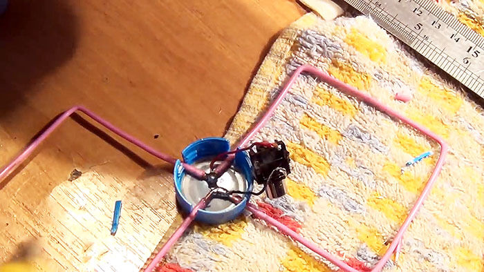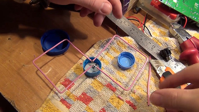 Берем провод и не снимая изоляции сгибаем плоскогубцами два одинаковых квадрата со сторонами 67 мм.