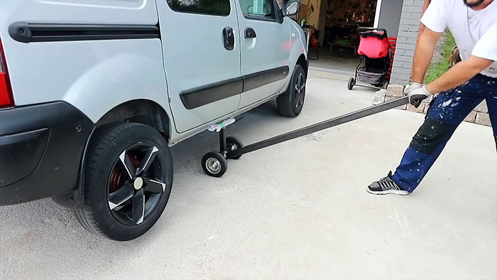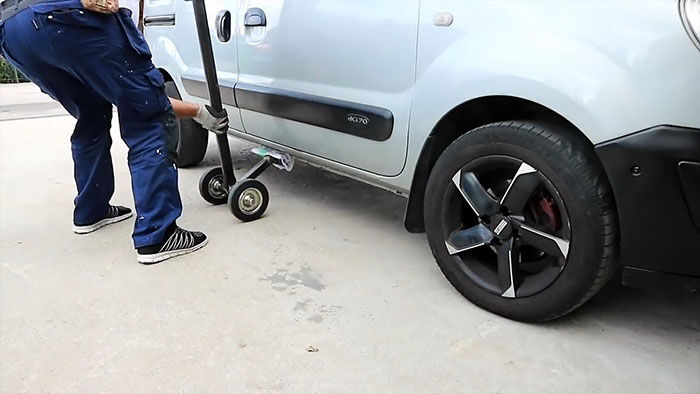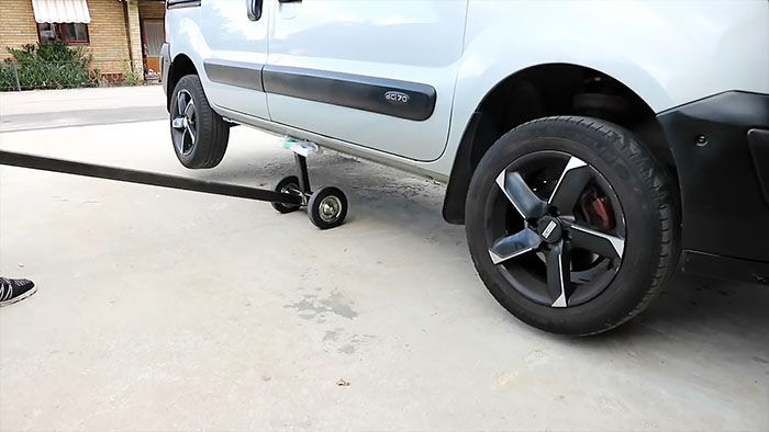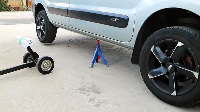 После завершения работ, вновь приподнимаем нашим приспособлением авто и убираем домкрат или упор.