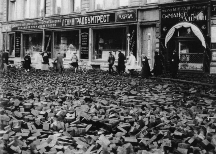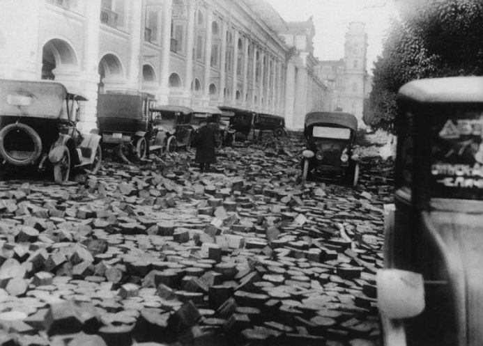 Разрушенная наводнением мостовая на проспекте 25-го Октября (Невский проспект) 23 сентября 1924 года