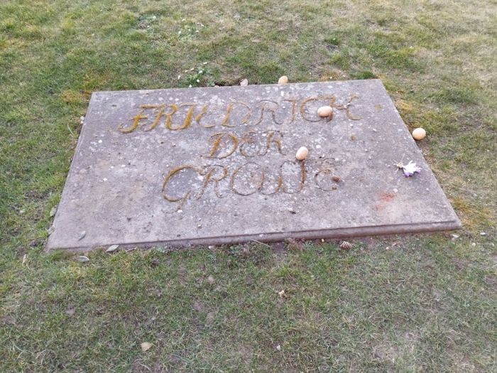 Фридрих умер в 1786 году и был похоронен в своем дворце Сан-Суси в Потсдаме. Сегодня, если вы придете на его могилу, то увидите, что посетители оставляют там картофель — мелкий, иногда старый и сморщенный. Его кладут на камень в знак благодарности от людей, чьи прапрадеды в темноте украли его урожай.