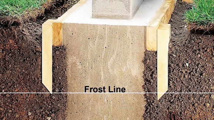 В первую очередь, важно узнать глубину промерзания грунта в зимнее время. Так можно установить глубину заложения фундамента, причем его основание должно находиться ниже глубины промерзания.