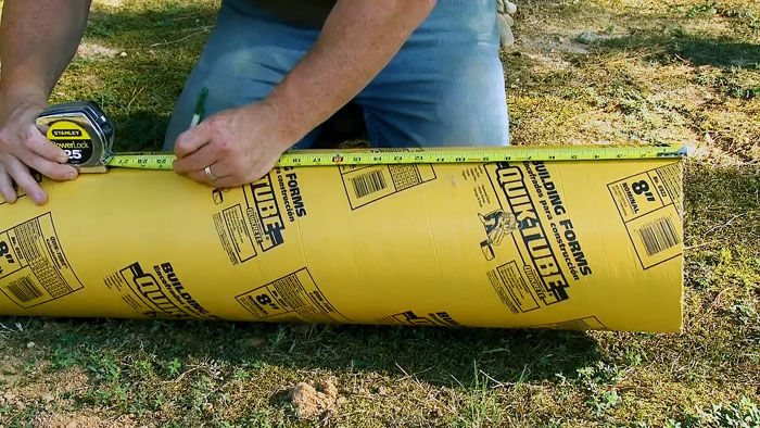 Отрезаем с помощью ножовки кусок длиной 61 см. Кстати, опалубку для столбчатого фундамента можно сделать из многих листовых строительных материалов, например, из рубероида.