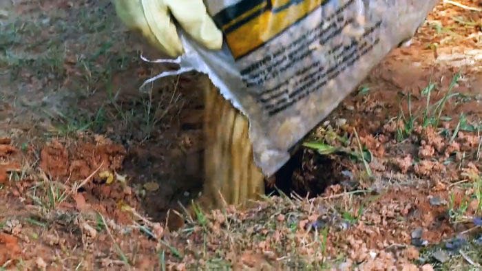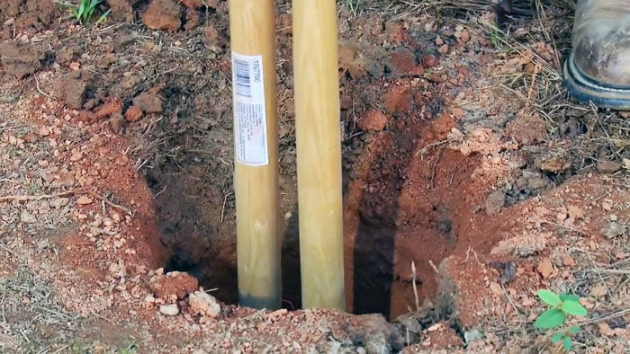 Бурим яму с помощью механизированного или ручного бура по диаметру тубы и глубиной 70-75 см. На дно насыпаем мелкий гравий и утрамбовываем с помощью деревянного бруса сечением 5 на 10 см. Толщина уплотненной гравийной подушки – 10-15 см.