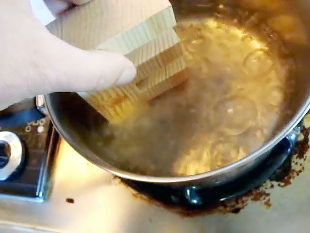 Затем опять помещаем заготовку в кипящую воду сплюснутой стороной.