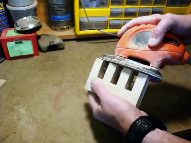Потом шлифуем все грани, убирая возможные отпечатки и придавая заготовке вид «только что распиленного дерева».