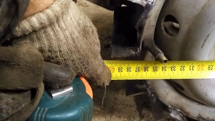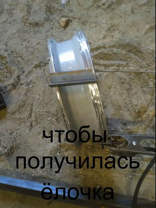 Его отрезки надежно привариваются на первое колесо не ровно, а с небольшим перекосом в 1 см.