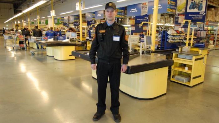 Охранник в магазине — не сотрудник полиции и не представитель государственной власти. Даже если он работает в форме и при рации, его полномочия ограничены рамками частной охранной деятельности и правилами магазина.