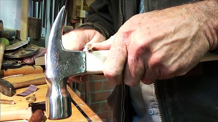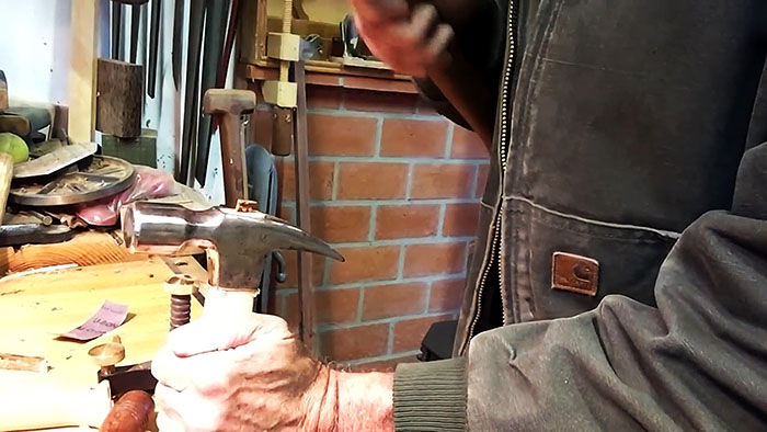 Осталось дело за малым. Осаживаем молоток на получившуюся рукоятку.