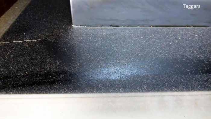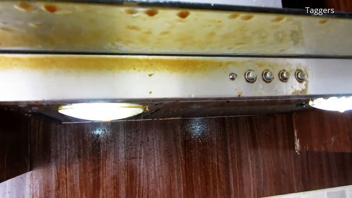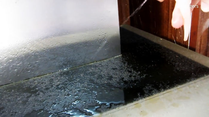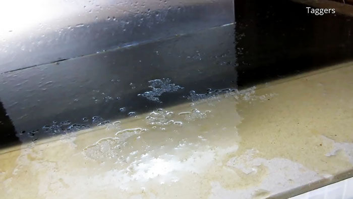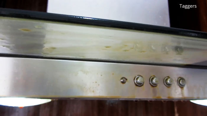 Еще до того, как средство будет распределено по всей площади плиты, можно будет заметить, как жир начинает «всплывать». Но нужно оставить жидкость на 2-5 минут для большего эффекта.