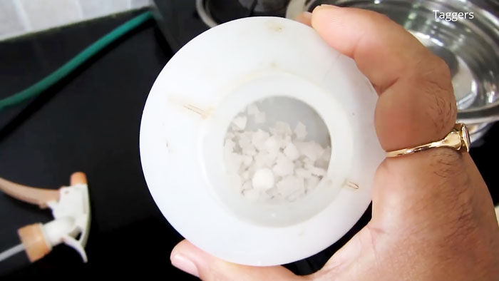 На весь процесс чистки уйдет всего несколько минут. Сначала нужно подготовиться. Для этого нужно сделать чистящую смесь. Едкий натр смешивается с горячей водой.