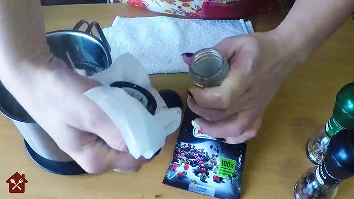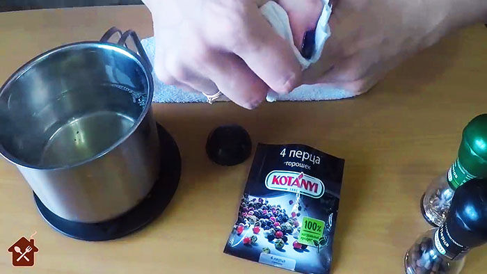 Необходимо подготовить среднюю по объему кастрюлю с кипятком, новый пакет специй (конкретное наименование значения не имеет), бумажную салфетку и полотенце.