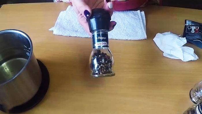 Таким методом очень быстро и просто дается вторая жизнь одноразовой стеклянной мельнице. Устройство отлично мелет не только семена перца, но и кориандра, тмина, горчицы, зира и пр.