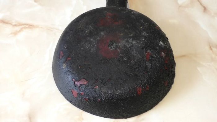 Достаньте сковородку из емкости и металлическим ершиком, скребком или иным жестким приспособлением удаляйте грязь, настройтесь на повторение процесса. С первого раза достичь желаемого результата не удастся.
