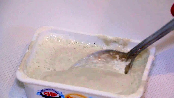 Первым делом необходимо приготовить раствор. Для этого известь заливаем водой, реакция идет с выделением тепла, используйте соответствующую посуду. Размешиваем и делаем консистенцию жидкой сметаны.