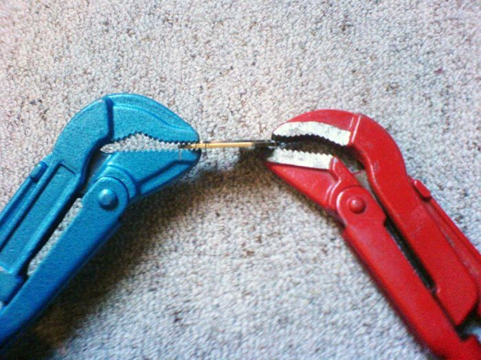 Нужно достать два больших универсальных разводных ключа. Чем больше, тем лучше. Так как с помощью них нужно будет создать большое усилие на излом. Соответственно рычаг имеет непосредственное значение.