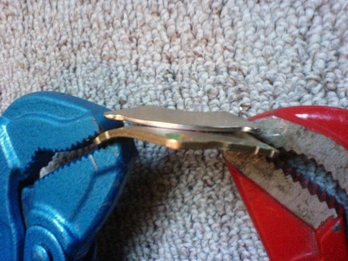 Зажимаем ключами конечки металлической подложки не прикасаясь к самому магниту. Он же наклеен не на всю поверхность, а по краям металл выступает, вот за него и беремся.
