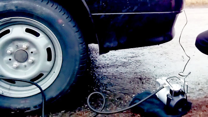Накачиваем давление в запаске насосом.