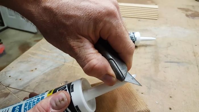Обычно тюбики продаются с насадками, которые либо имеют уже отверстие с колпачком, либо наглухо запаянные. Берем строительный нож и срезаем носик под 45 градусов.