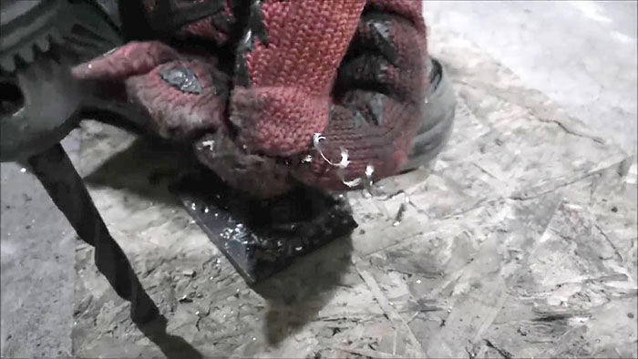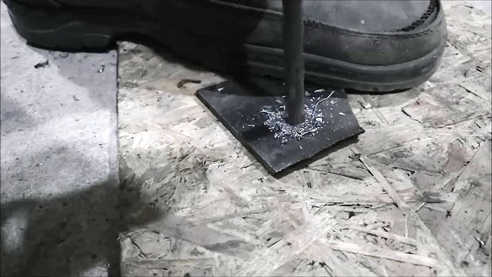 Берем дрель, вставляем заточенный инструмент в патрон. Пробуем сверлить стальную пластину толщиной 8 мм.