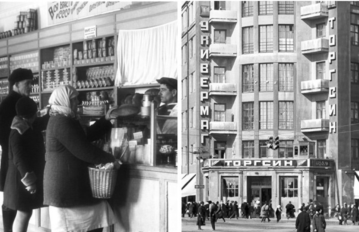 Созданный в 30-х годах «Торгсин» предназначался для сбора золота с приезжих иностранцев, предоставляя им широкий ассортимент товаров, но уже через год он превратился в «пылесос» по выкачке золота, серебра и драгоценностей из своего народа. «Золотой рубль» «Торгсина» был равен 6 рублям 60 копейкам, но на черном рынке обменный курс доходил до 65-70 рублей.