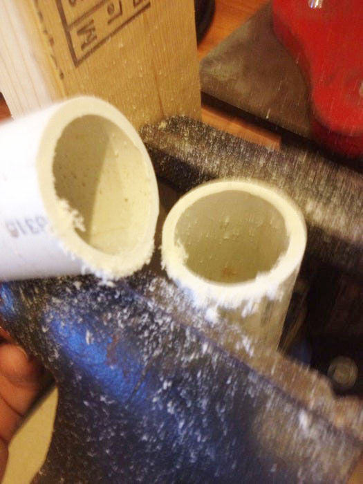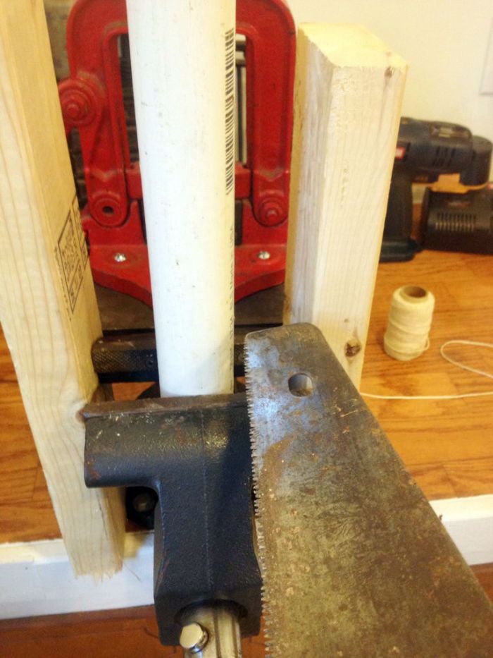 Труба должна быть надежно закреплена, чтобы ее не вырвать. Если нет, то попросите кого-нибудь подержать ее пока вы пилите.