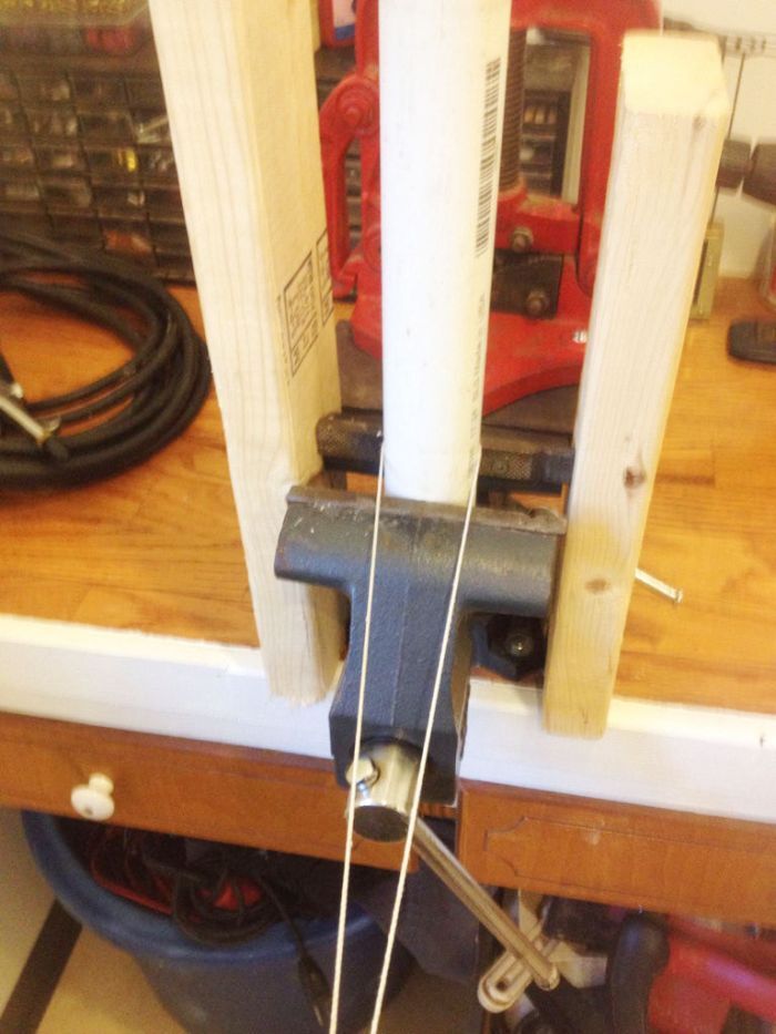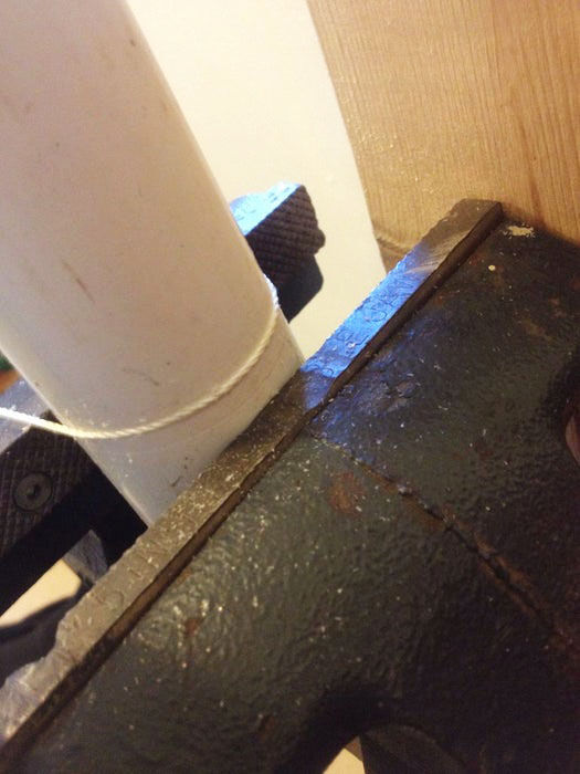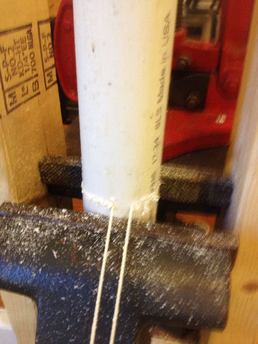 Все банально просто. Отматываем от катушки примерно метр нити, отрезать не обязательно - можно просто удерживать в руке. Заводим нить за трубу.