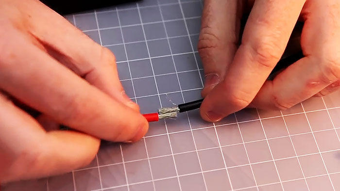 Концы проводов нужно очистить от изоляции стриппером или ножом. Достаточно открыть примерно по 1 см. Оголенные многопроволочные жилы следует распушить и с торца состыковать между собой.