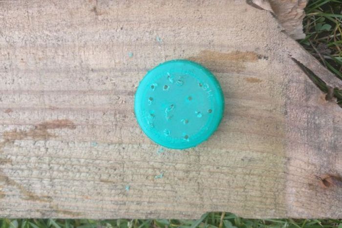 В крышке канистры делается 10-20 отверстий сверлом 2 мм. При отсутствии дрели их можно прожечь раскаленным гвоздем. Для этого он разогревается над газовой плитой или обыкновенной свечкой. Чтобы не обжечься, гвоздь следует удерживать плоскогубцами. Прожигать крышку лучше на открытом воздухе, поскольку выделяется дым и запах горелого пластика.