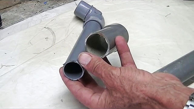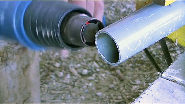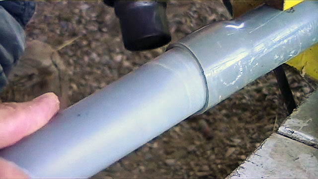 В этом случае на одной из соединяемых труб необходимо выполнить раструб, используя строительный фен (тепловой пистолет) для размягчения пластика и вторую трубу для формирования расширения.