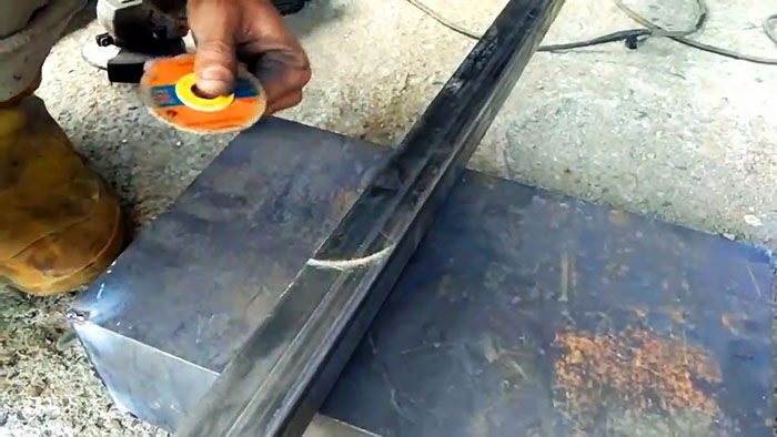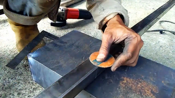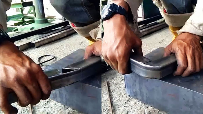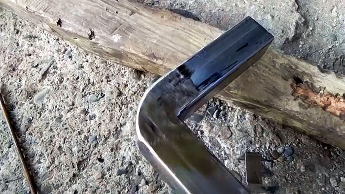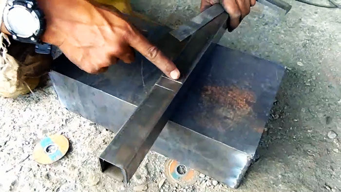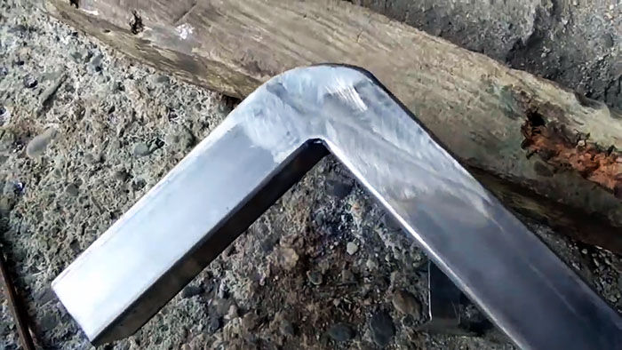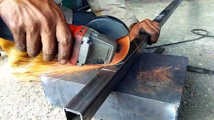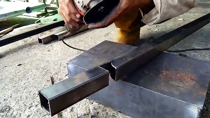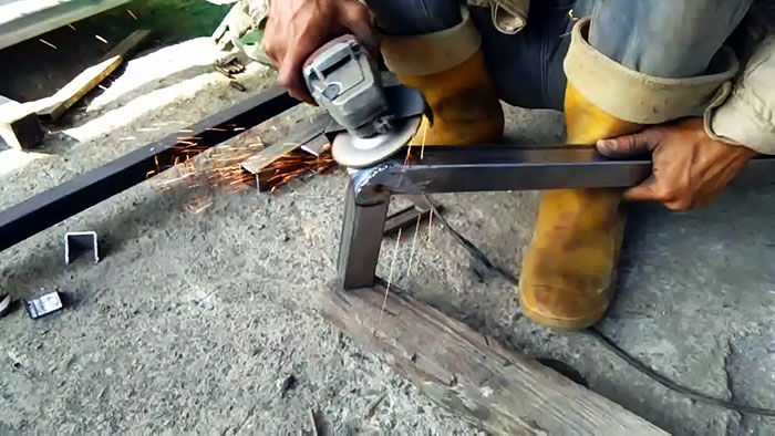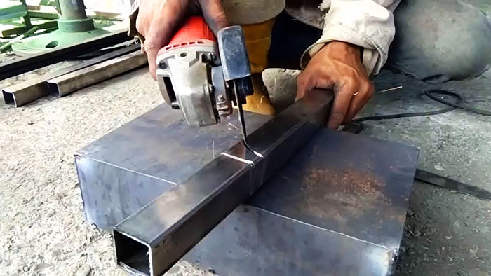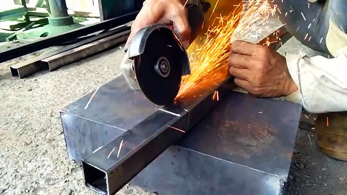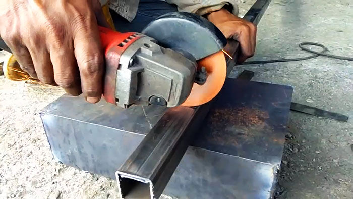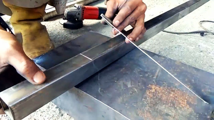 Зачистив места реза, сгибаем короткий конец трубы, при этом оставшаяся после удаления металла сторона профильной трубы огибает очерченные по дуге две поперечные стороны, образуя с внешней стороны плавный изгиб, а с внутренней – прямой угол.