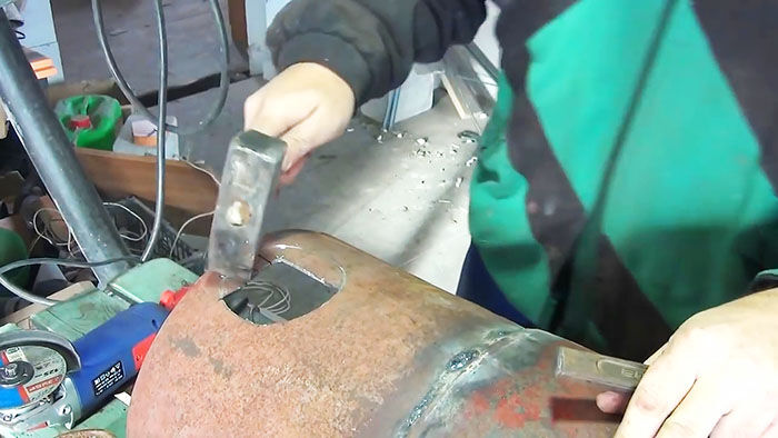 Далее по краю каждого сектора через зубило или пробой наносятся удары молотком.