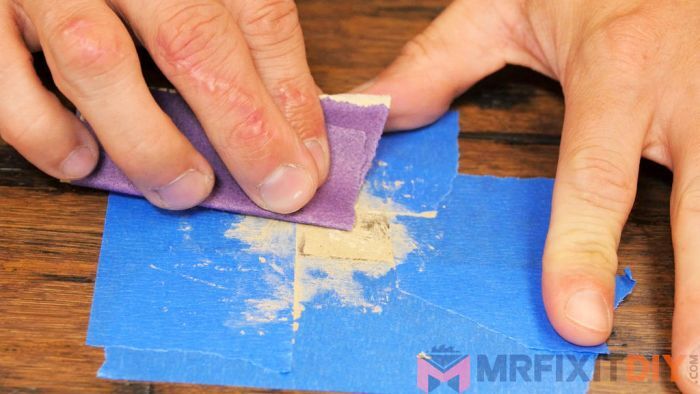 После высыхания шпаклевки ее нужно отшлифовать наждачной бумагой.