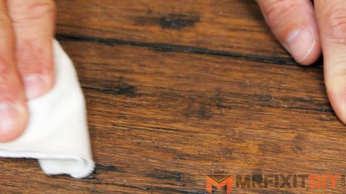 Если на дереве имеются не просто царапины, а рельефные дефекты, то необходимо разогреть восковой карандаш, сделав красящий стержень мягким.