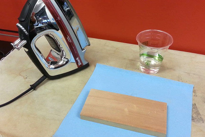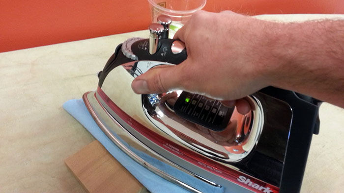 Он совершенно прост и очевиден. При его реализации не требуется какой-либо подготовительной работы, если не считать таковым нагревание утюга его подключением к электрической розетке и набор полстакана воды из-под крана.