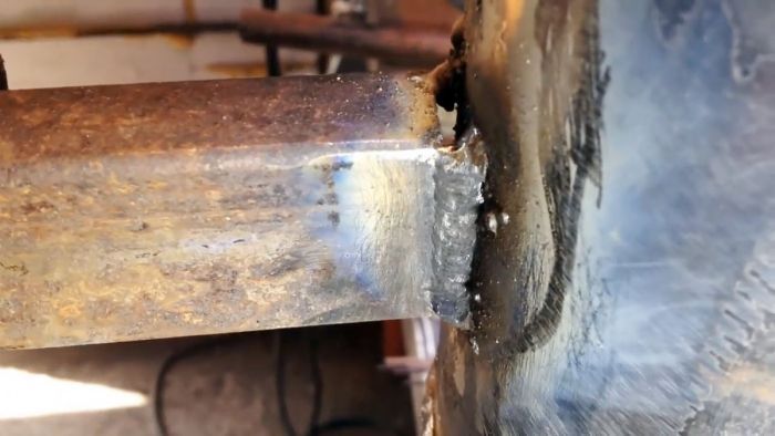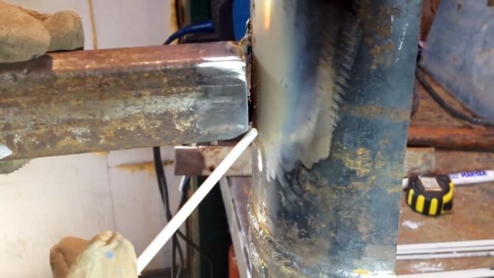 В качестве объекта выберем фрагмент толстостенной (более 5 мм) круглой и профильной трубы с толщиной стенок в 1,5 мм. В жизни это может быть опора ограждения и приваренный встык поперечный профиль.