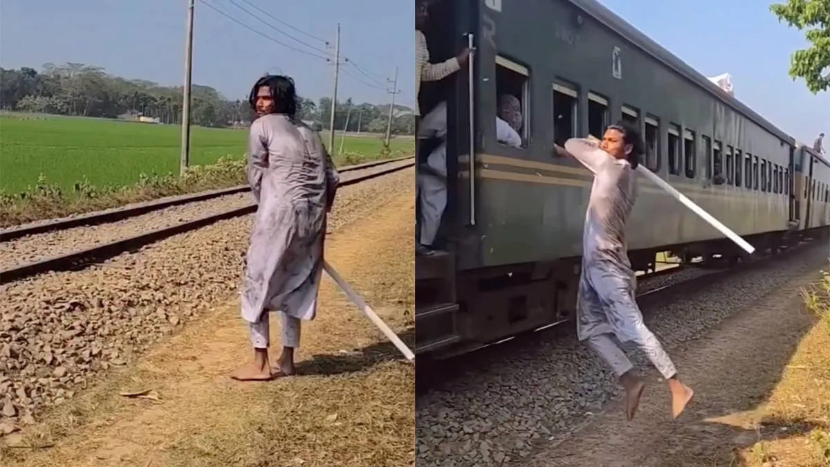 На видео, демонстрирующем этот вид преступления, видно, как один из воров, находясь рядом с поездом (вероятно, на платформе или вблизи путей), в нужный момент наносит резкий удар длинной палкой. Цель этого удара – выбить телефон из рук пассажира, который, скорее всего, держит его у окна или даже выходит с ним на платформу.