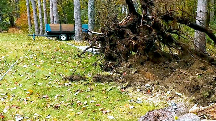 Разберите полиспаст, погрузите выкорчеванный пенек на прицеп и увезите с участка.