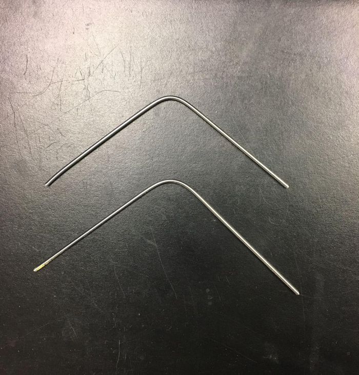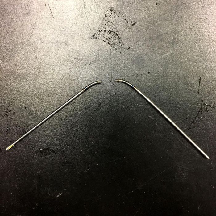 Выпрямляем оба стержня, чтобы проиллюстрировать разницу в механических свойствах. Первый стержень (стержень, который не был вторично закален), будет очень хрупким и будет ломаться, так как атомы не находятся в стабильном положении.
