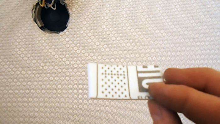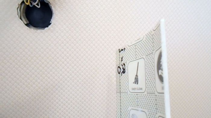 2. Приклеиваем вырезанные кусочки линолеума внутри подрозетника в диаметрально противоположных направлениях на линии выдвижных лапок, предварительно зачистив, обезжирив и смазав клеем соединяемые поверхности.