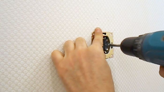 4. Убедившись, что электрическая розетка закреплена плотно и надежно, устанавливаем на место лицевую панель путем завинчивания центрального винта электрической дрелью или ручной отверткой.