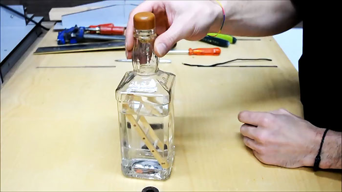 Для усиления эффекта налейте в бутылку воду и закройте подходящей пробкой.