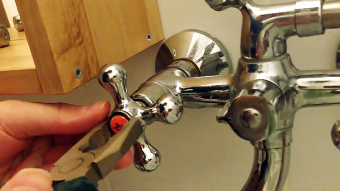 3. Откручиваем декоративный элемент: в большинстве случаев это можно сделать рукой. Если не получается, используем пассатижи. Чтобы не попортить поверхность, под губки можно подложить кусочек ткани.