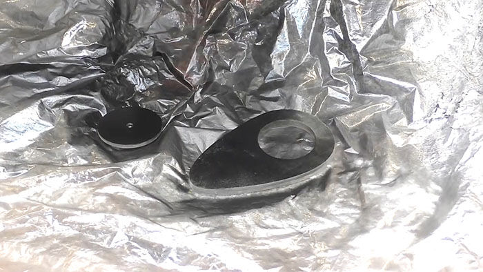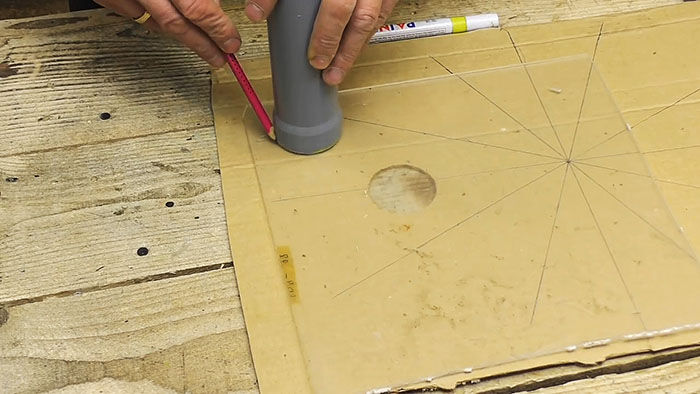 Для заглушки с другого края нам необходимо разметить на листе текстолита внутренний диаметр патрубка и внешний размер широкой части трубы, после чего вырезаем два круга.