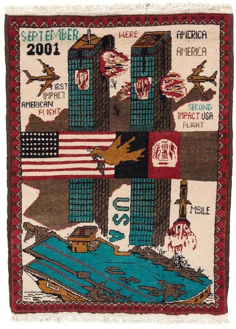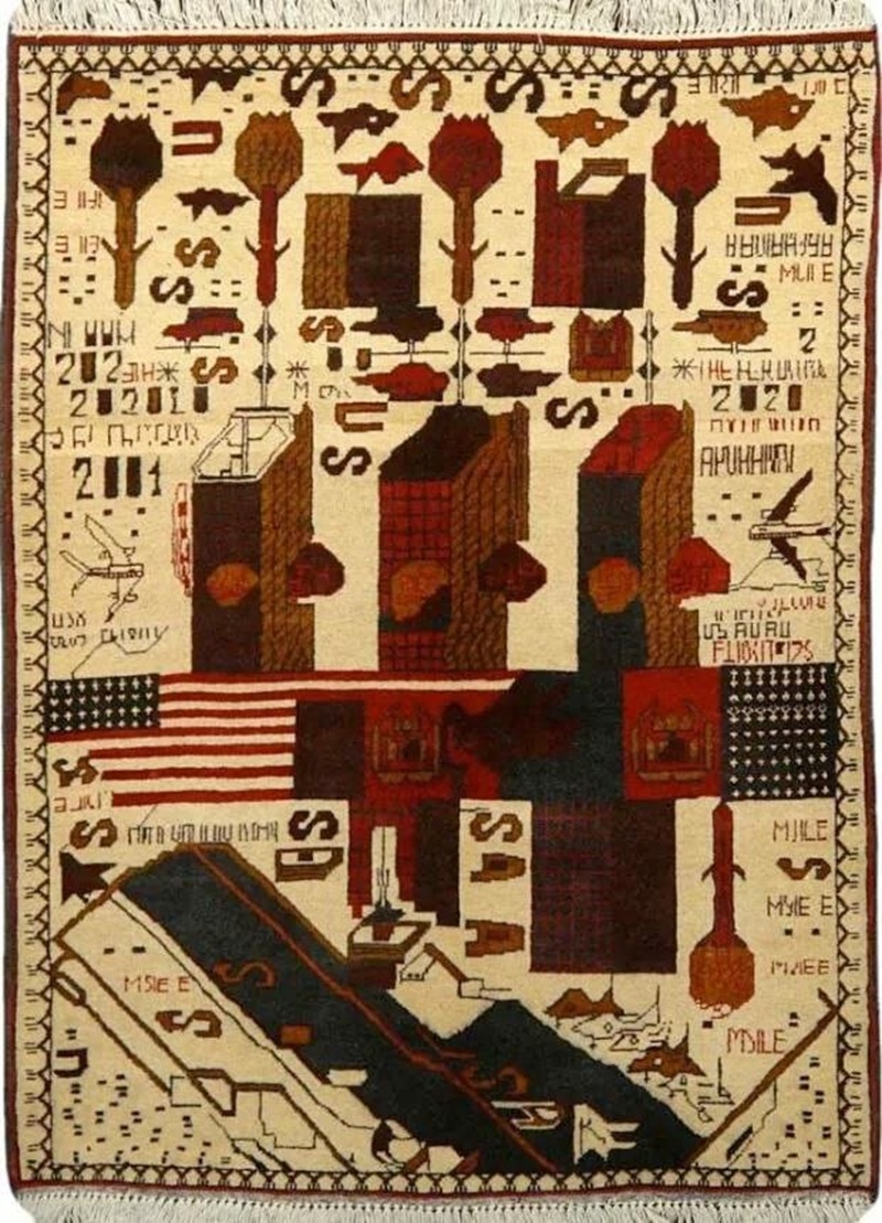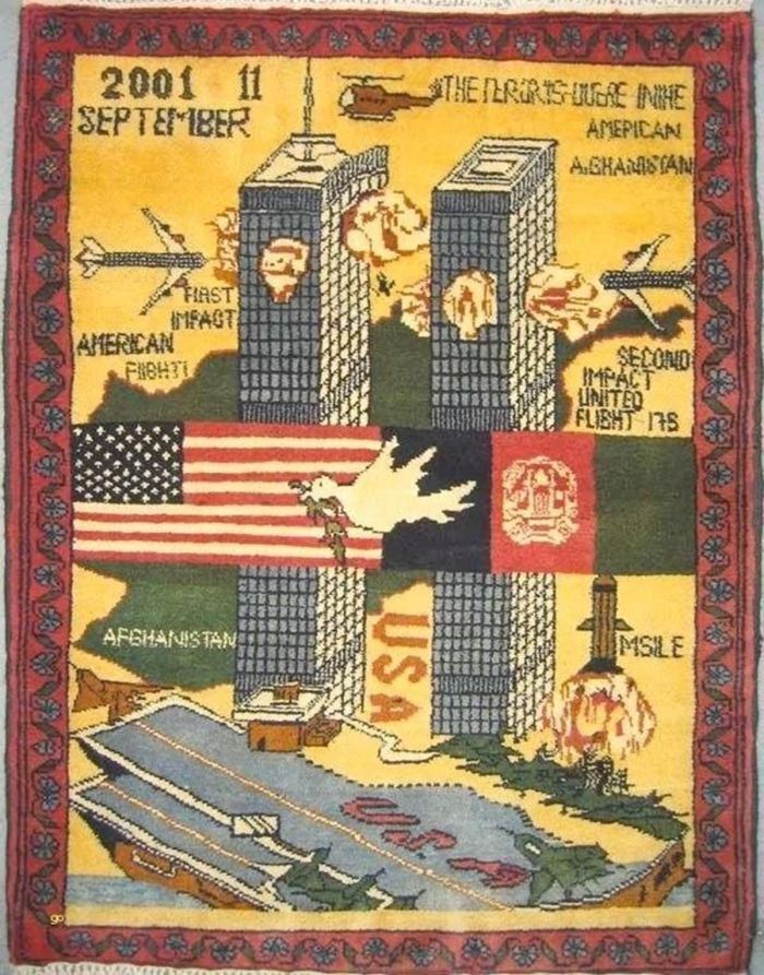 После событий 11 сентября 2001 года и последующего ввода войск США в Афганистан, в страну хлынул поток иностранцев – военных, журналистов, гуманитарных работников. Местные жители, всегда отличавшиеся предприимчивостью, быстро поняли, что на этом можно заработать. Так, около 2002 года, появились первые "ковры 11 сентября".