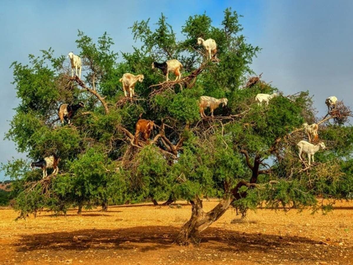 Козы на ветвях арганового дерева/ © udivitelno.comС виртуозностью опытного акробата они взбираются по стволам арганового дерева — эндемика этих мест. Аргания колючая — растение с узловатым стволом и тернистыми ветвями, достигающее высоты 8–10 метров. Оно живет 100–150 лет и славится своими плодами размерами со сливу. Главная их ценность — косточки, из которых делают аргановое масло. Оно находится в пятерке самых дорогих растительных жиров и высоко ценится в кулинарии и косметологии.