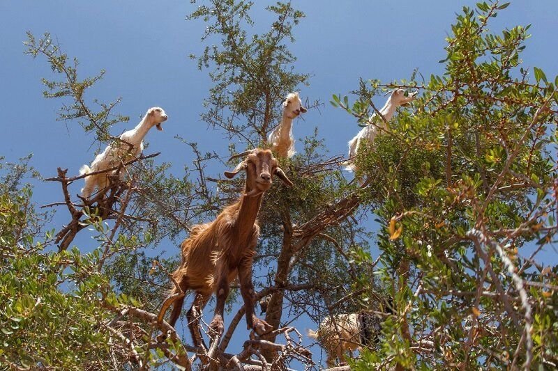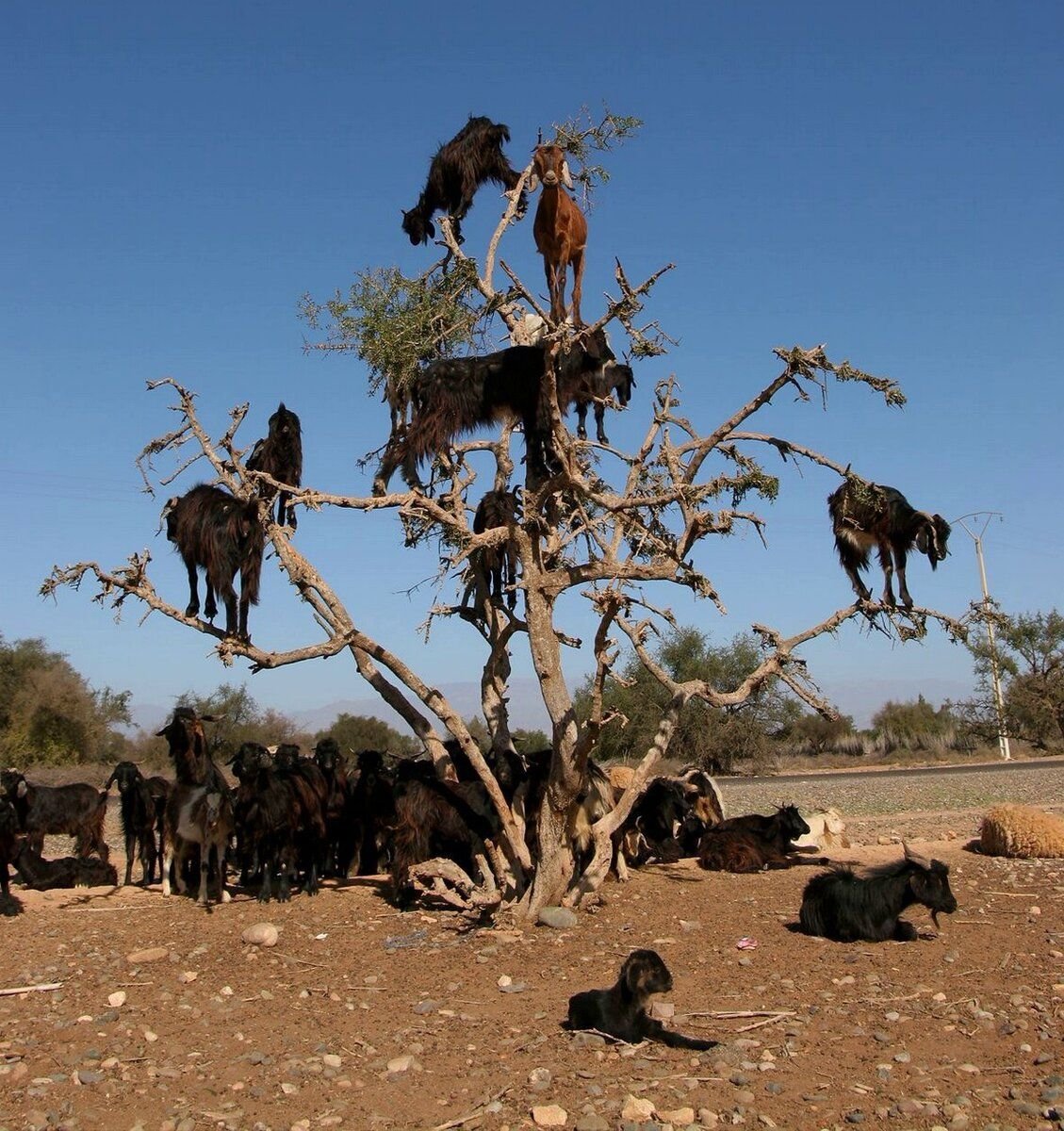 Да, на деревья домашних коз (а это именно домашние, а не дикие животные) загнал обычный голод. Дело в том, что Марокко, а особенно ее юго-восточные районы, примыкающие к Сахаре, крайне бедны растительностью. Трава тут редкая, жесткая, а кустарники покрыты недружелюбными колючками. По этой причине местные козы лишены возможности питаться естественным кормом, не прибегая к своей находчивости.