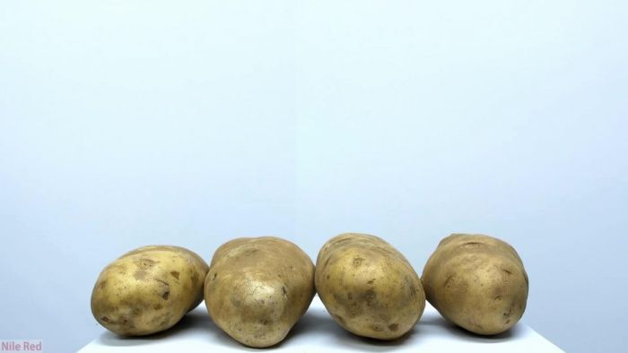 Итак, для проведения эксперимента нам понадобится четыре крупные картофелины, которые необходимо очистить.
