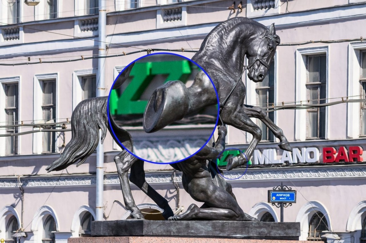 Эти два жеребца расположены на одном берегу р. Фонтанки и бегут в одну сторону. А вот два других в противоположную, посмотрим на их копыта…
