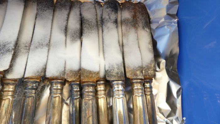 Недавно ко мне в руки попал набор столовых приборов из серебра, которому около ста лет. За это время ложки, ножи успели потемнеть и поржаветь, и я решил их очистить от образовавшегося налёта. В этой статье я поделюсь довольно эффективным способом, с помощью которого можно вернуть старинным столовым приборам первоначальный блеск. Итак, поехали.