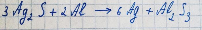 Таким образом, у сульфида серебра появляется возможность прореагировать непосредственно с алюминием.